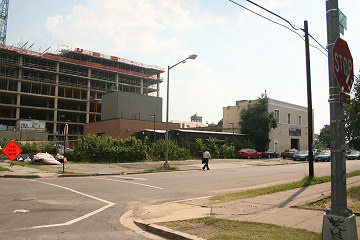 July 18, 2006 - The view from Half and L in 2006, with the 20 M office building under construction at rear, the Navy Yard Metro station chiller plant at center, and the Empire DC Cab building at the far end.