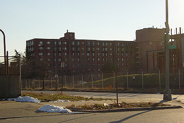 Looking southeast from Virginia Avenue at the barracks construction, with the Capper Senior apartment building in the background. (06/03)