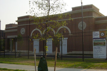 The new barracks under construction, looking at the same angle (the northwest corner of 7th and L streets, SE) as in the rendering at the top of the page. (05/03)