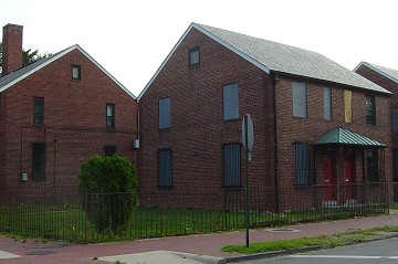 Looking south into Capper/Carrollsburg down 3rd Street from under the Southeast Freeway overpass, the only view that many Capitol Hill workers and residents have ever had of the Cappers and Near Southeast. (05/03)