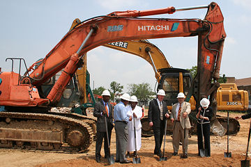 While six people with shovels can move some dirt, it's probably a good thing that the heavy machinery is on standby. (6/26/07)