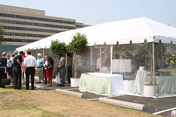 The tent erected in the EYA parking lot for the groundbreaking festivities. (6/26/07)