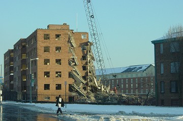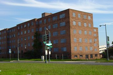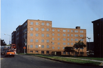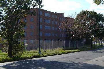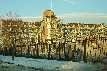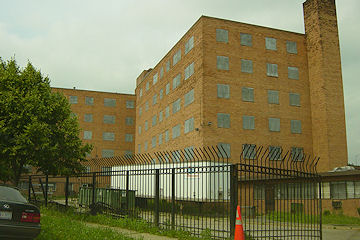 For years, the boarded up Capper Apartment building, built in 1958 and abandoned in the mid-1990s, was the focal point at the bottom of the 6th Street SE exit from the Southeast Freeway. (09/03)