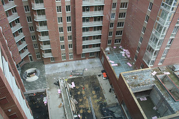 Looking down at the under-construction courtyard area of Capitol Hill Tower, before the grass was put in. (03/06)
