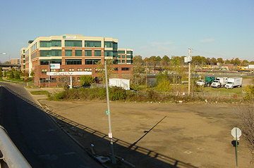 Here's a four-step panorama of the area as seen from the 11th Street Bridge's old M Street exit ramp before it was demolished. First, looking to the northeast, with
