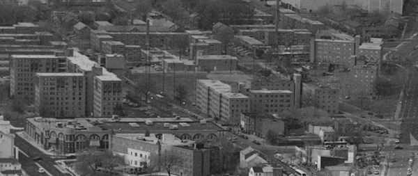 Capper/Carrollsburg. And, to the right in the distance are the Ellen Wilson buildings just north of the freeway at 6th Street that were demolished in the mid-1990s as well as the high-rise Capper building
