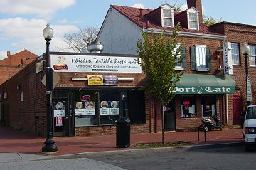 The southeast corner of 8th and L, showing the newly opened Chicken Tortilla restaurant, next to the Port Cafe. (10/05)