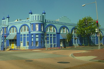 The "Blue Castle" building at 8th and M, originally a car barn and now a multi-use building that houses