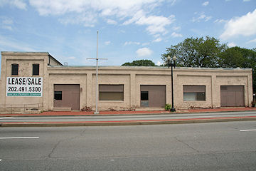 A 2008 view of 900 M Street, a nondescript building that was once home to a Hudson auto dealership and more recently a dialysis unit. (08/06)