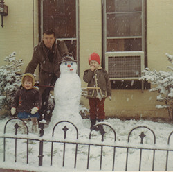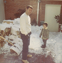 Dad and Jamie in the backyard, with the new garage, after the Blizzard of January '66. |
