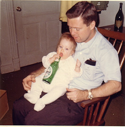 Dad, in his Kennedy rocking chair, getting his baby daughter started off on the right foot. |