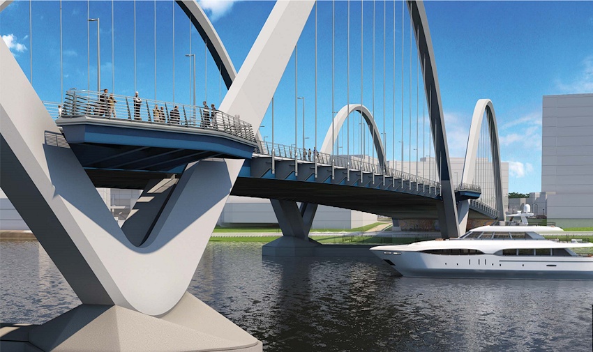 March 30, 2018 - What the wide side paths on both sides of the bridges will look like, with separate bike and pedestrian lanes, as well as overlooks situated out of the line of movement.