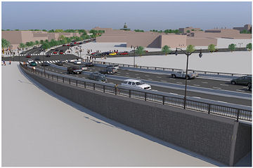 (Top right) What the South Capitol and Potomac intersection will look like after the makeover is finished. (The stadium will be at the upper right, on the northeast corner of the intersection.)