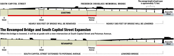 In July and August 2007 DDOT undertook a $27 million major reconfiguration to dismantle the existing 400 feet of raised viaduct from Potomac Avenue north to O Street, with an additional 200 feet of the bridge from south of Potomac Avenue to the river's edge being lowered using jacks, allowing the bridge to come to street level at Potomac Avenue.