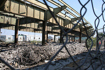 The bridge in mid-demolition, at South Capitol and P, looking at the north side of P Street under the bridge. (7/8/07)