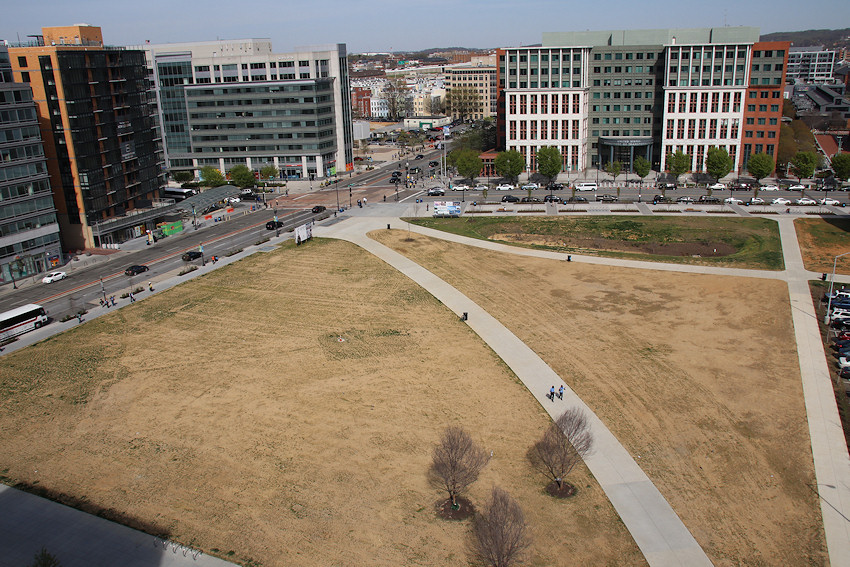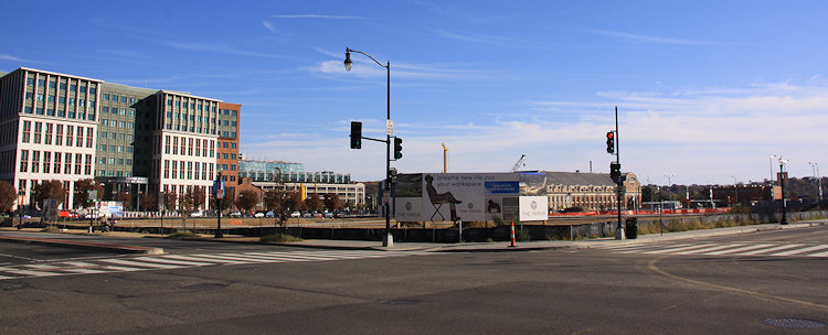 Jan. 22, 2015 - The cleared site back in 2015, as seen from a Nats parking garage, to give an idea of location and scope, before the parking lot was reconstituted and the northern park area built.