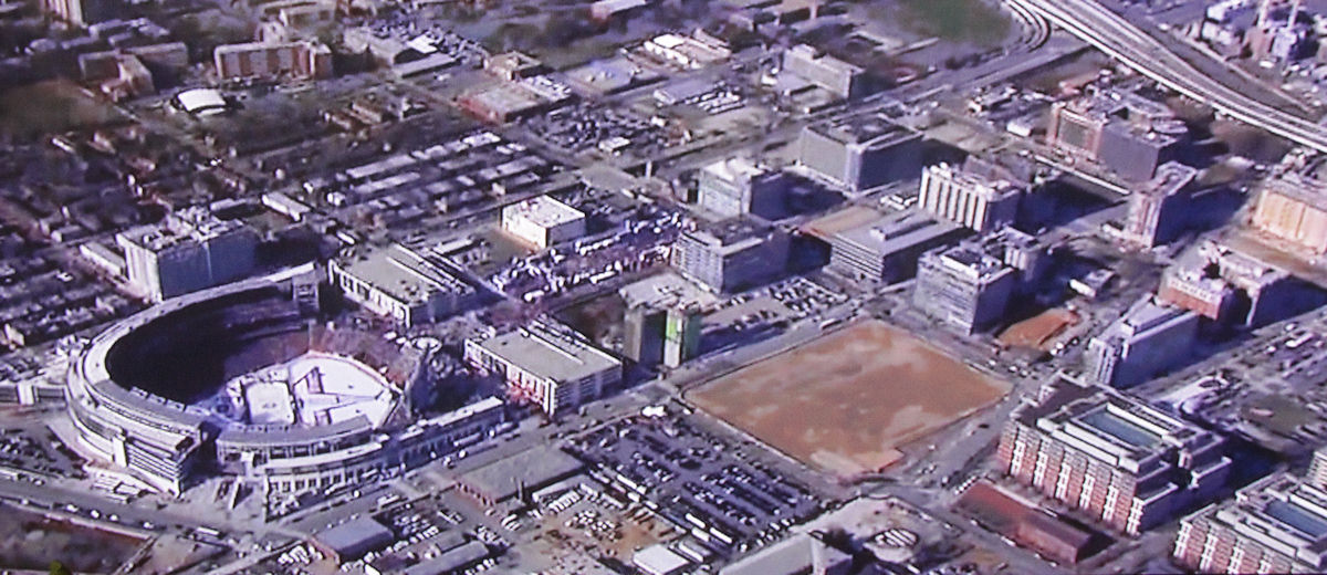 NHL Winter Classic at Nationals Park helpfully provided this overhead view of the vastness of the Parcel A/F/G site after demolition and site clearing was completed.