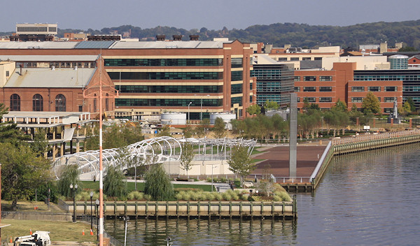 Sept. 7, 2010 - Standing on the Great Lawn the day of the park's opening, looking back toward the Canal Basin and the Foundry Lofts.